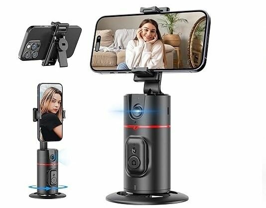 Trépied de suivi automatique du visage, rotation à 360 °, support de prise de vue intelligent avec perche à selfie à distance, sans application, contrôle gestuel, avec 2 lumières Led.