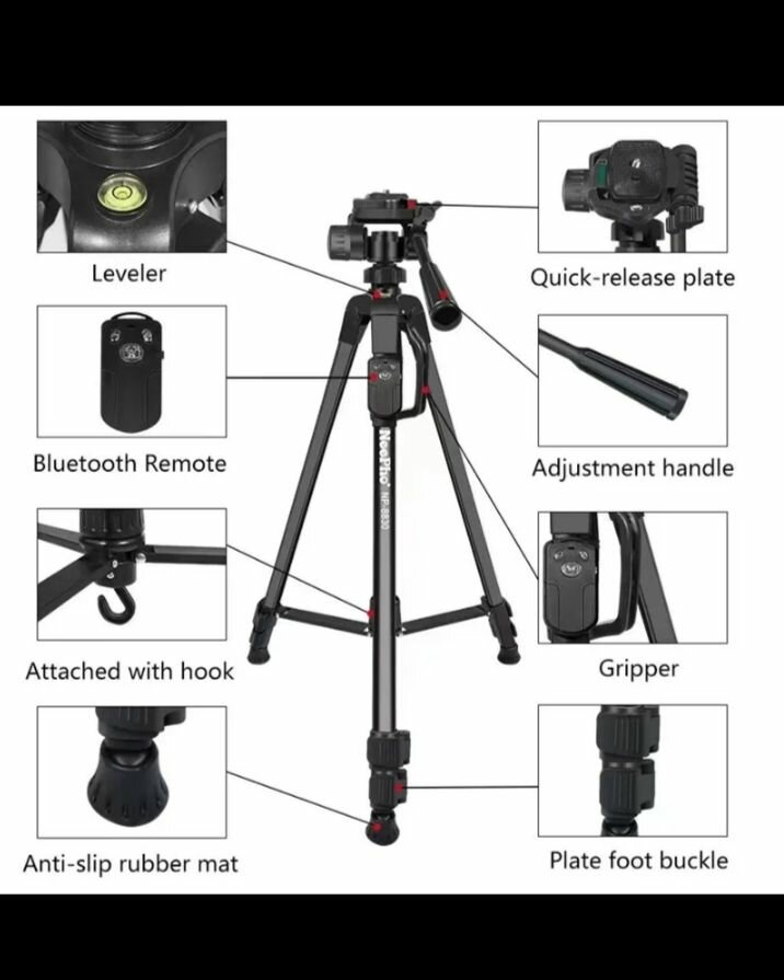 Découvrez le trépied professionnel NeePho - parfait pour les photographes et vidéastes. Avec une plaque à dégagement rapide, niveau intégré, et une télécommande Bluetooth, il offre stabilité et flexibilité pour des prises de vue impeccables. Sa poignée de réglage et son gripper garantissent une utilisation facile, tandis que le crochet intégré et les pieds antidérapants assurent une stabilité maximale. Idéal pour les studios ou les terrains difficiles.