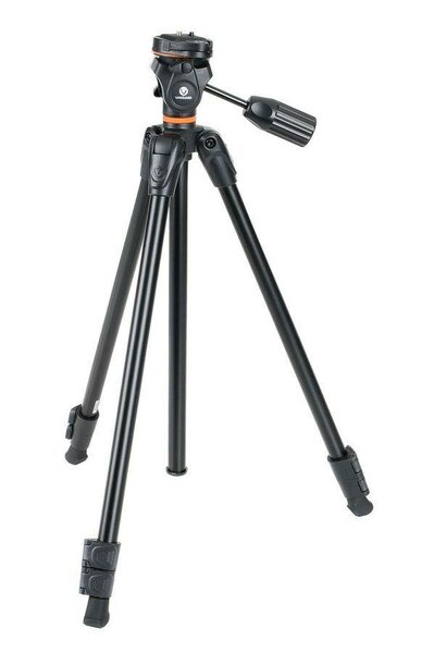 Trépied en alliage d'aluminium robuste, idéal pour les vidéastes et photographes professionnels. Hauteur ajustable pour des prises de vue stables et fluides. Compatible avec divers appareils photo et caméras.