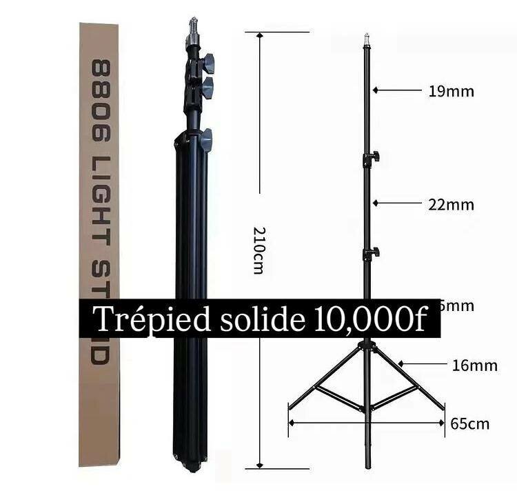 Découvrez ce trépied robuste, parfait pour la photographie professionnelle. Avec une hauteur ajustable jusqu'à 210cm, il offre une stabilité optimale grâce à ses tubes résistants (19-22mm). Idéal pour studios ou séances extérieures. Facile à transporter et à installer, il est votre allié pour toutes prises de vue de qualité.