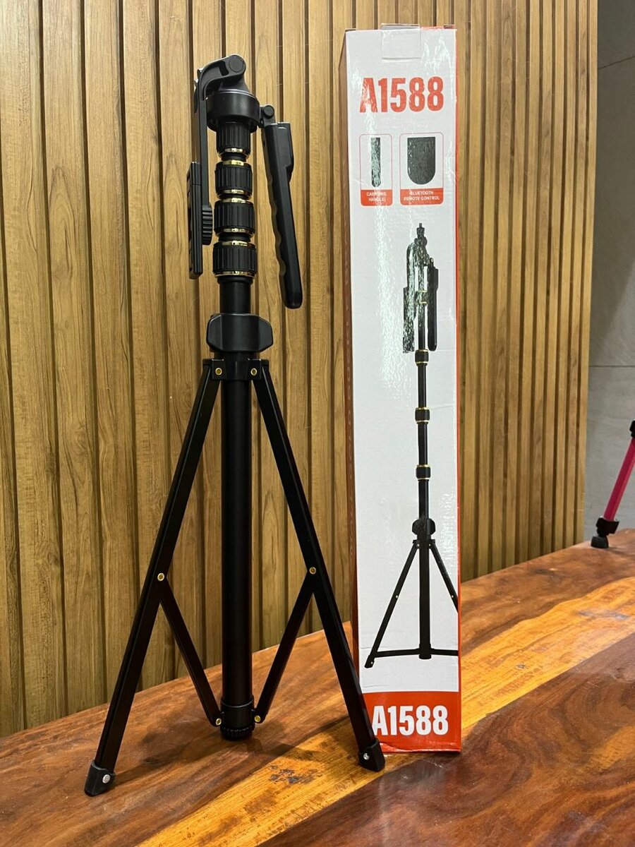 Capturez des moments parfaits avec le trépied télescopique A1588. Solide, réglable et idéal pour la photographie professionnelle, il inclut une télécommande pratique pour des prises de vue à distance. Compact et facile à transporter, il est le compagnon idéal pour les photographes en déplacement. Profitez de sa stabilité et de sa flexibilité pour des résultats impeccables!
