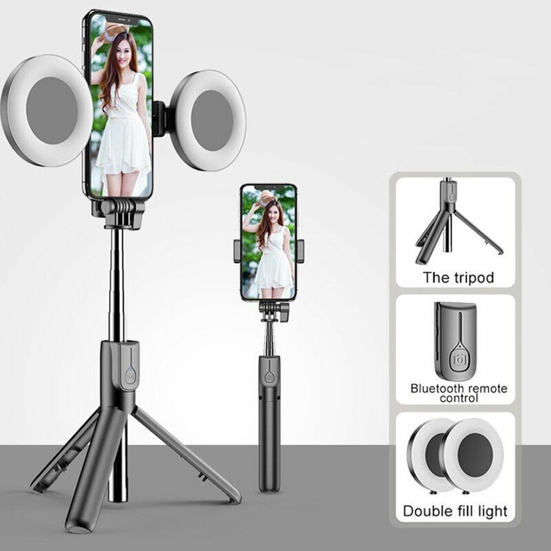 Améliorez vos prises de vue avec ce trépied télescopique équipé d'une double lumière et d'une télécommande Bluetooth. Compact et réglable, il est idéal pour les selfies, la photographie ou les vidéos en déplacement.