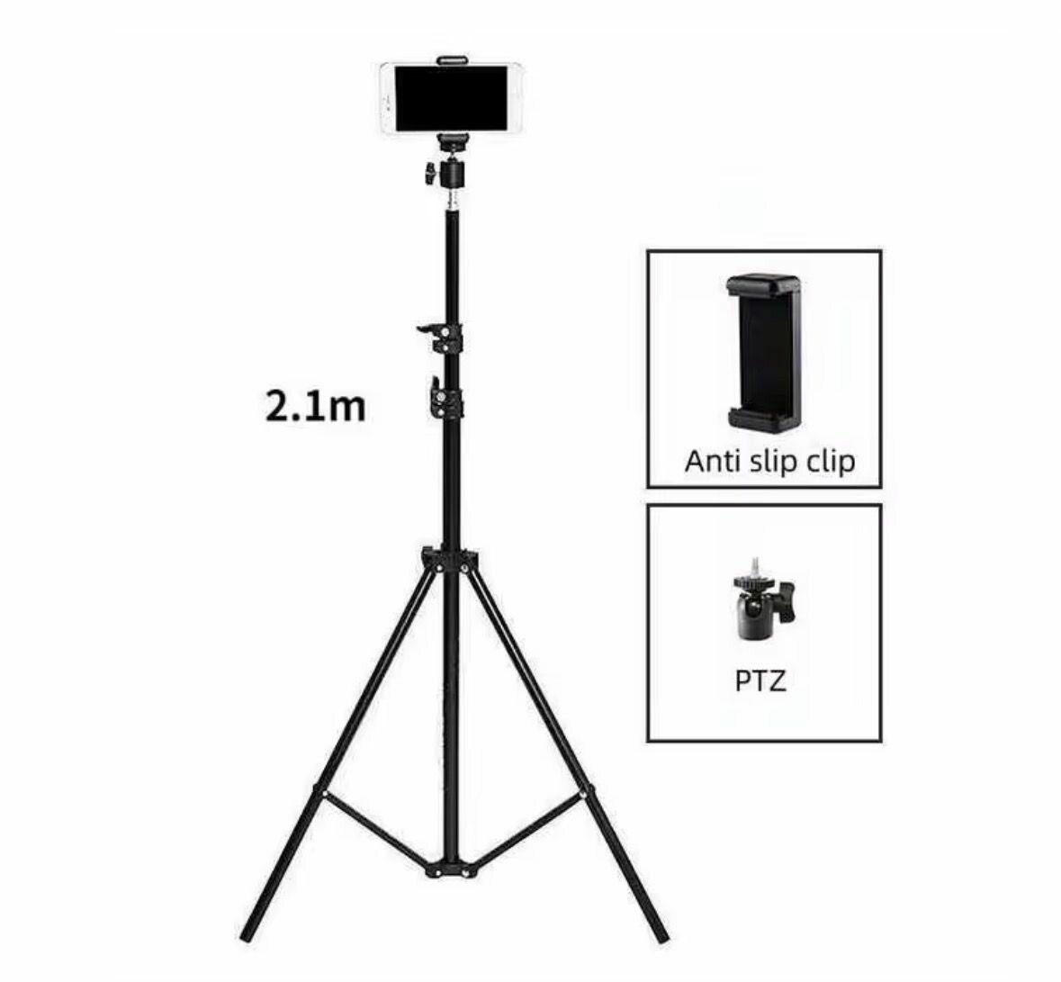 Trépied réglable pour téléphone, hauteur 2.1m, avec support PTZ et pince antidérapante, idéal pour les vidéos et la photographie mobile