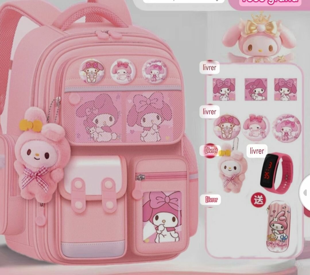 Ce sac à dos enfant, inspiré par des personnages de dessin animé, est parfait pour l'école. Disponible en plusieurs couleurs vives, il est livré avec des insignes, un bracelet et un porte-clés assortis. Idéal pour les classes primaires!