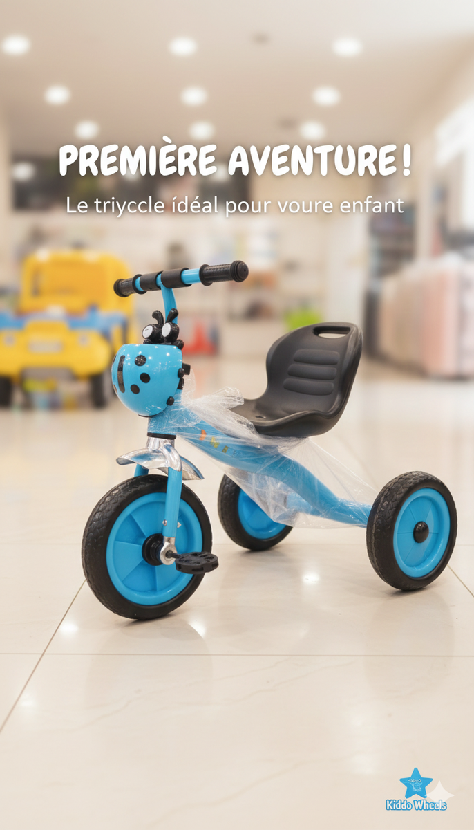 Idéal pour les premières aventures, ce tricycle bleu est sûr et amusant. Avec des roues stables et un siège confortable, il convient parfaitement aux jeunes explorateurs. Résistant et facile à manœuvrer, il promet des heures de plaisir en extérieur.