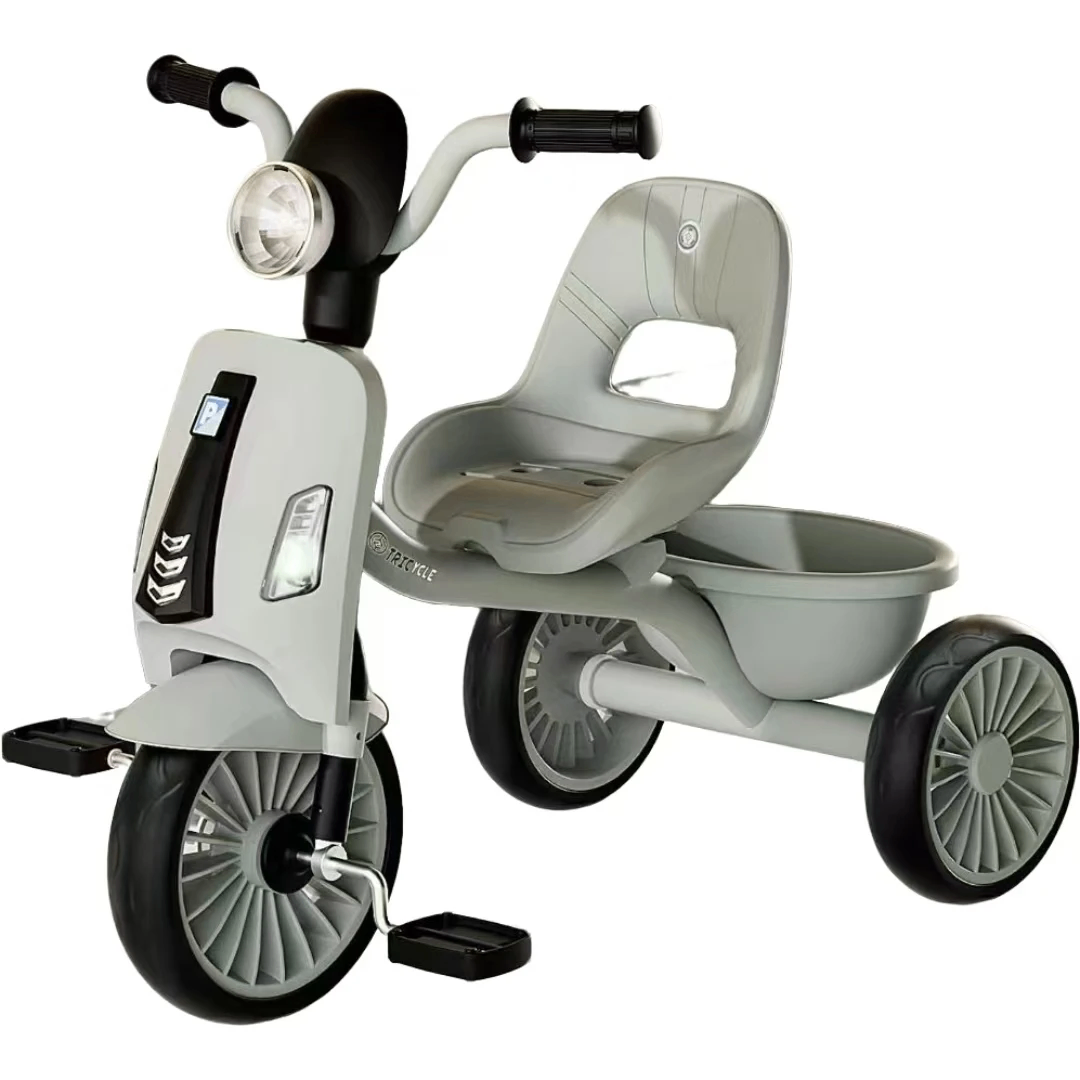 Découvrez ce tricycle pour enfants, alliant style moderne et sécurité. Parfait pour les promenades, il est doté d'un siège confortable et de phares pour une visibilité accrue. Robuste et idéal pour les aventures de vos petits.
