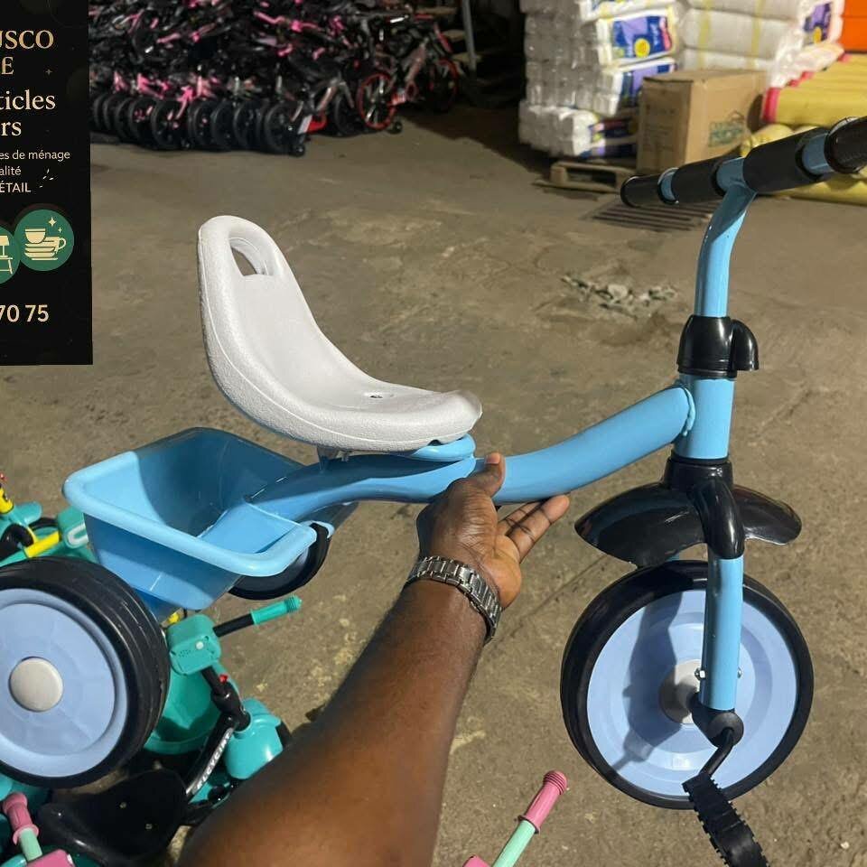 Découvrez ce tricycle pour enfants, idéal pour l'extérieur. Conçu pour offrir confort et sécurité avec ses roues stables et son siège ergonomique. Parfait pour développer l'équilibre et la coordination des tout-petits. Disponible en couleurs vives qui plaisent aux enfants, c'est le choix parfait pour éveiller leur enthousiasme pour l'aventure!