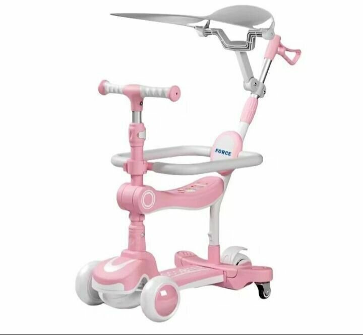 Tricycle évolutif 3 en 1 pour enfant, guidon réglable, couleur rose et bleu. Parfait pour l'apprentissage de l'équilibre et de la mobilité pour les tout-petits.