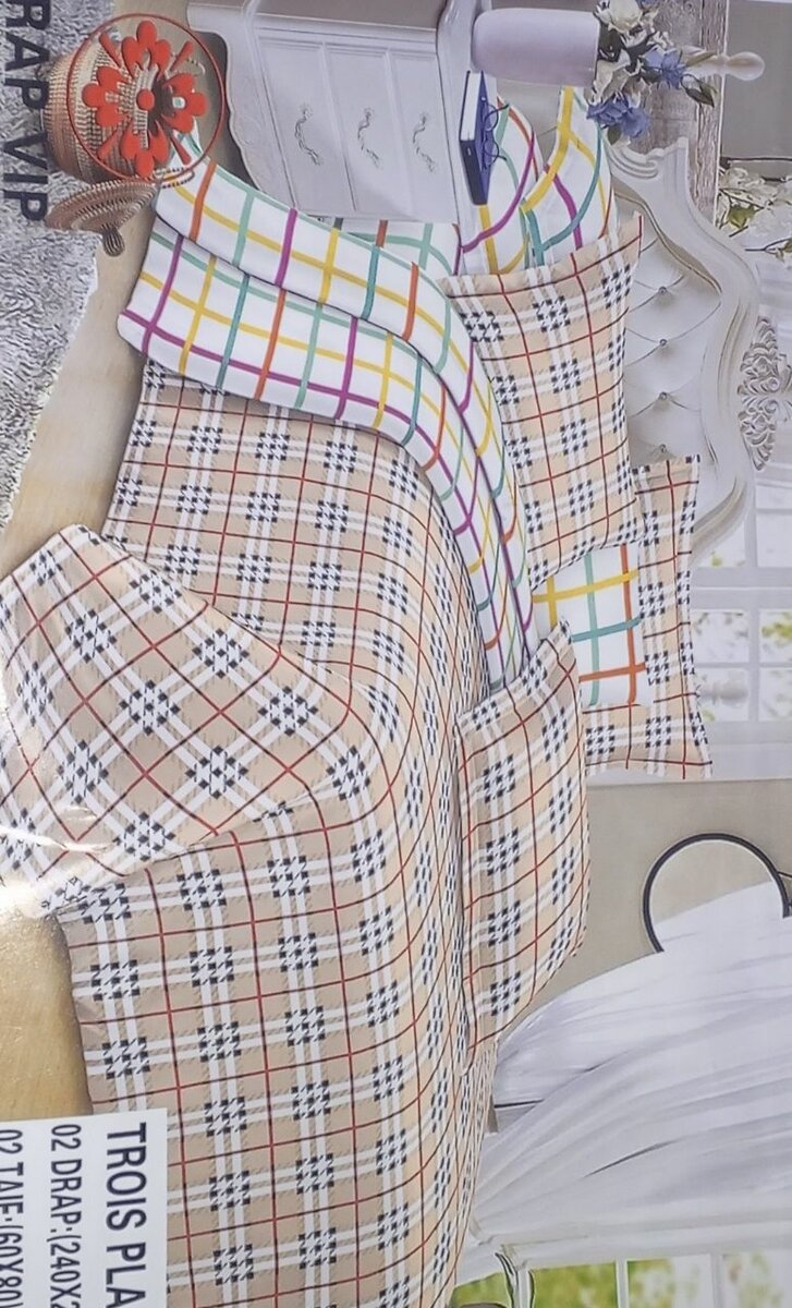 Élégant ensemble de trois rideaux à motif carreaux et pois. Parfait pour décorer votre salle de séjour ou chambre à coucher. Ajoute une touche de modernité et de confort à votre espace.