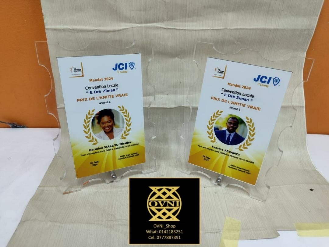 Sublimez vos activités avec nos trophées en Plexiglass exquis, fabriqués avec précision pour immortaliser vos moments de gloire. Apportez une touche d'élégance à vos réussites!