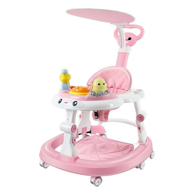 Offrez à votre bébé une découverte amusante et sécurisée avec cette trottinette rose, dotée d'un jeu interactif et d'une ombrelle protectrice. Idéale pour stimuler la marche et l'éveil.