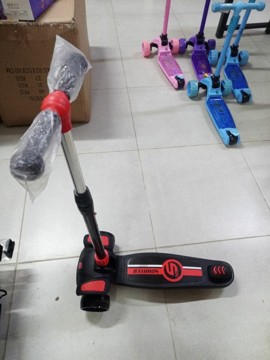 Découvrez cette trottinette pliable pour enfant en rouge éclatant, idéale pour des balades en toute sécurité. Avec son design compact et ses poignées confortables, elle est parfaite pour les loisirs en plein air.