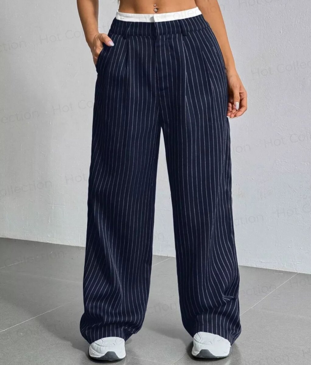 Брюки палаццо с двойным белым поясом