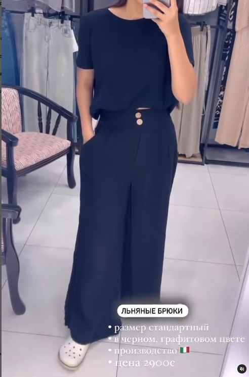 брюки льняные черные
