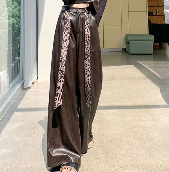 Широкие брюки из искусственной кожи в американском стиле ретро для женщин на осень и зиму, новый стиль, маленькая свободная драпировка с высокой талией, прямые брюки