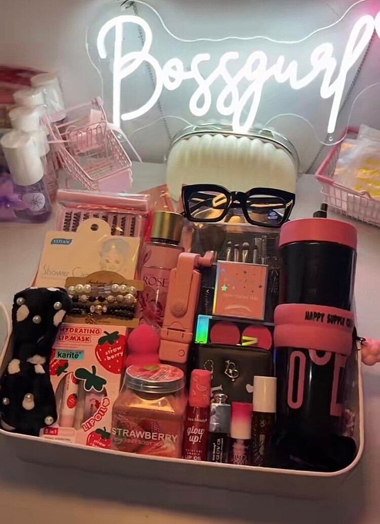 Découvrez la trousse de beauté Bossgirl, idéale pour les femmes qui aiment prendre soin d'elles. Contient divers produits de beauté et accessoires.