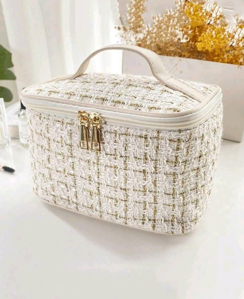 Idéale pour organiser vos cosmétiques en toute élégance, cette trousse de beauté en tissu texturé offre un design chic et pratique. Sa forme compacte et son intérieur spacieux sont parfaits pour les voyages ou à la maison. Avec différents coloris disponibles, elle s’adapte à votre style personnel. Un choix parfait pour garder vos produits de maquillage à portée de main.