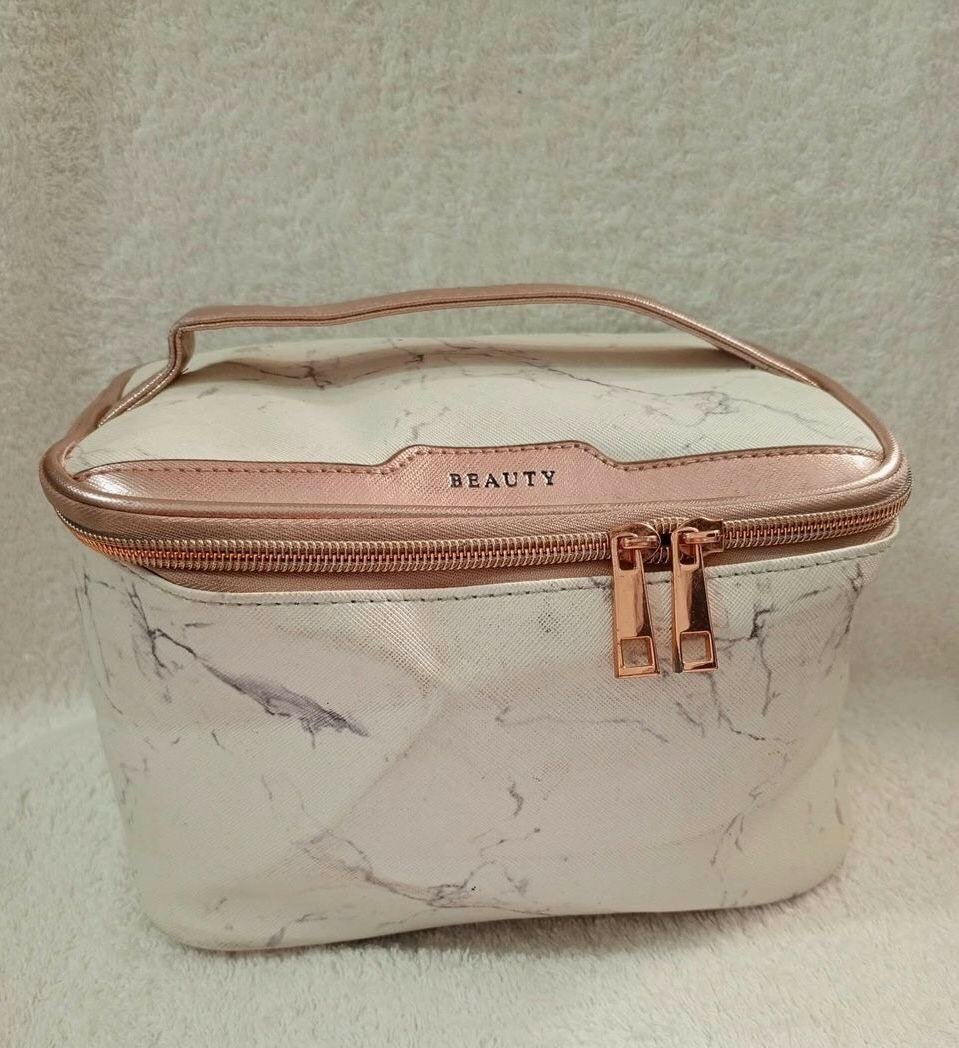 Cette trousse de maquillage marbrée est l'accessoire idéal pour organiser vos produits de beauté. Combinant style et fonctionnalité, elle dispose de fermetures éclair robustes et d'une poignée pratique pour un transport facile. Compacte mais spacieuse, elle est parfaite pour un usage quotidien ou en voyage. Apportez une touche de sophistication à votre routine beauté avec cette élégante trousse.