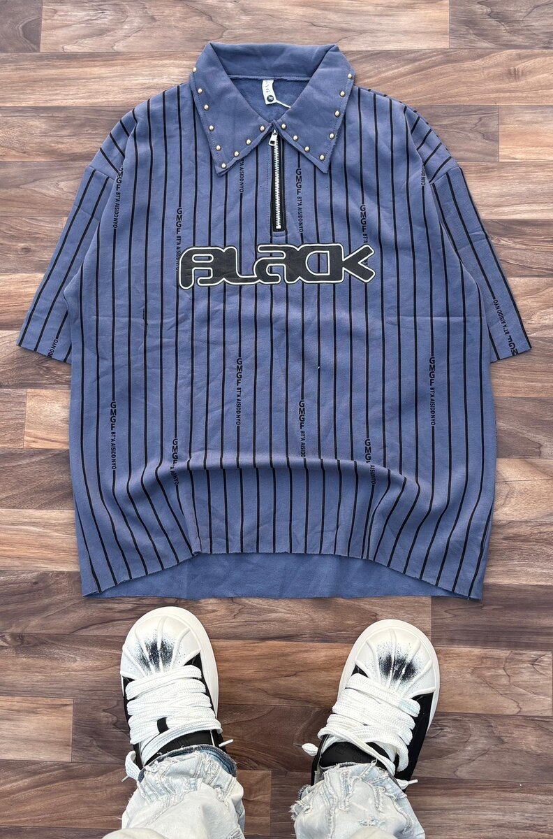 T-shirt tendance à rayures avec col clouté pour un look unique et élégant. Disponible en plusieurs motifs et parfait pour un style casual chic. Idéal pour les sorties décontractées ou les événements stylés.