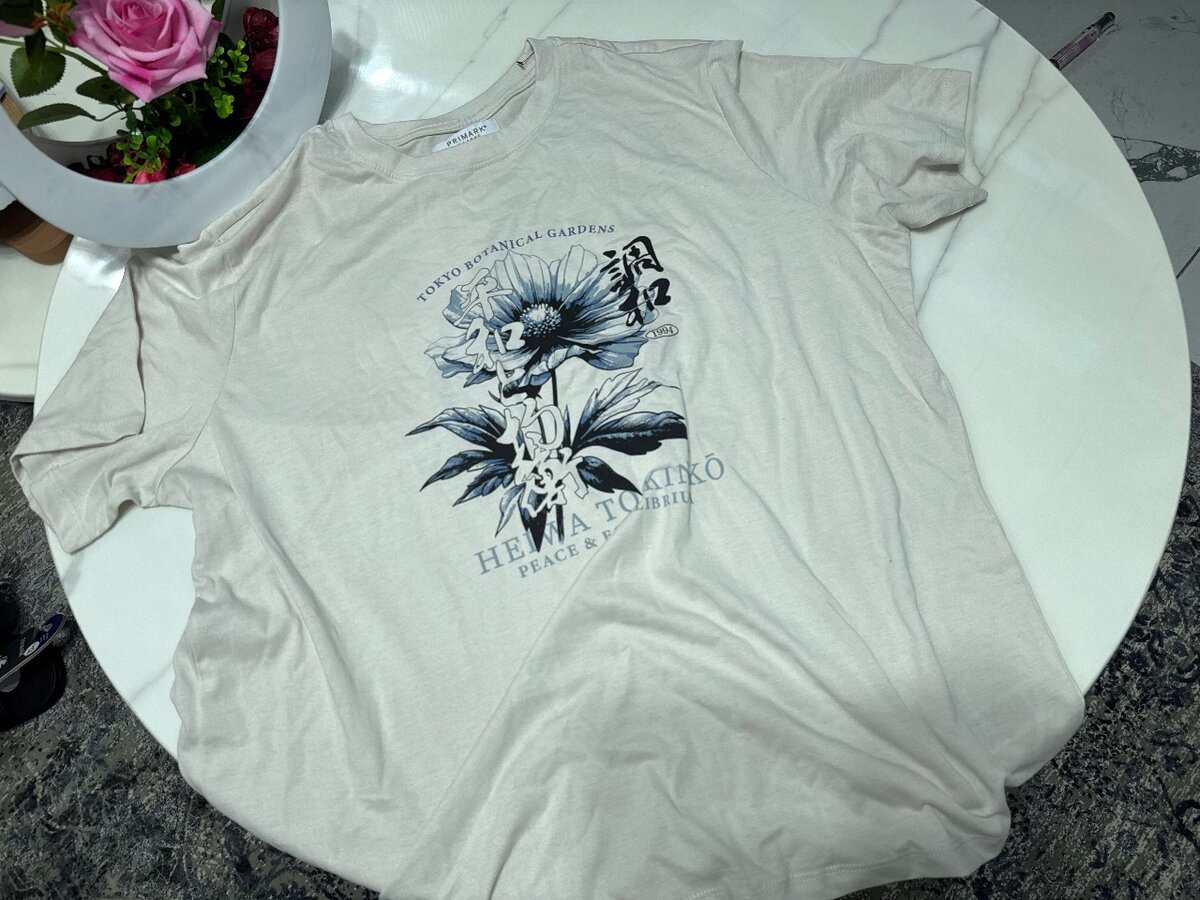 Optez pour ce T-shirt élégant avec un motif floral captivant de marque PRIMARK . Confortable et stylé, il saccorde parfaitement à votre garde-robe casual pour un look moderne et décontracté. Idéal pour les sorties ou les journées détendues.