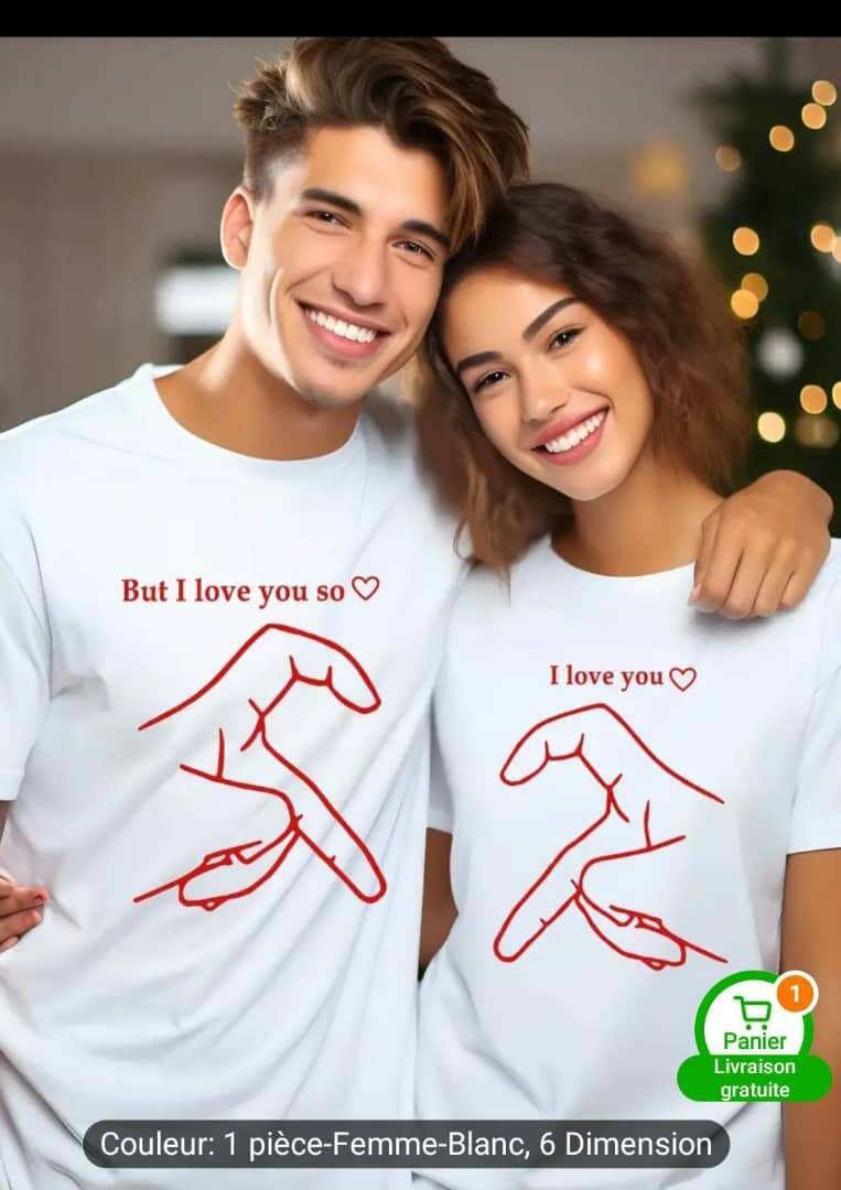 T-shirt pour couple avec design unique. Parfait pour exprimer votre amour. Conçu pour être confortable et élégant. Disponible en différentes tailles.