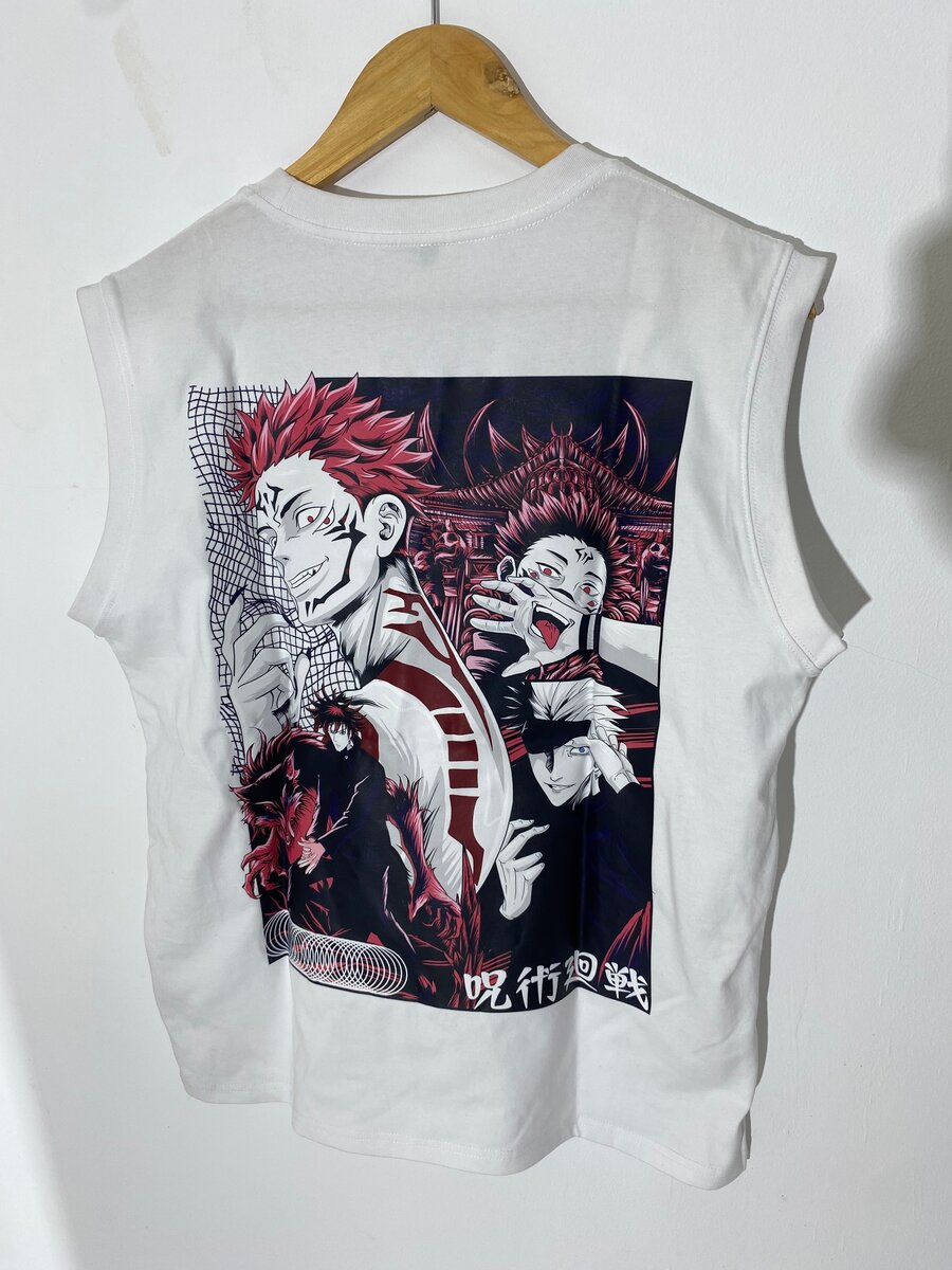 T-shirt avec impression Anime Jujutsu Kaisen. Conçu pour les fans d'anime, ce vêtement est idéal pour un usage quotidien ou pour exprimer votre passion pour la série.