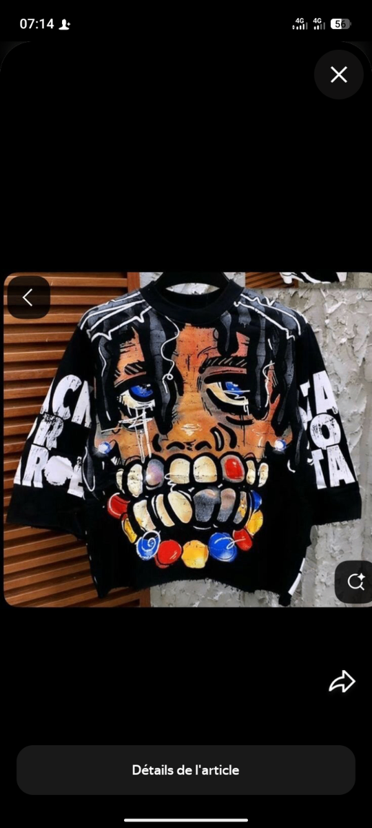 Découvrez ce t-shirt unique au design artistique vibrant qui attire tous les regards. Parfait pour les amateurs de mode urbaine, ce haut polyvalent ajoute une touche audacieuse à n'importe quelle tenue. Fabriqué à partir de matériaux de haute qualité pour un confort optimal, idéal pour un style décontracté ou festif.