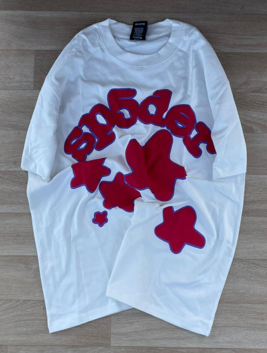 T-shirt en coton blanc avec motif rouge audacieux, idéal pour un style décontracté et tendance. Confortable et stylé, parfait pour toutes les occasions.