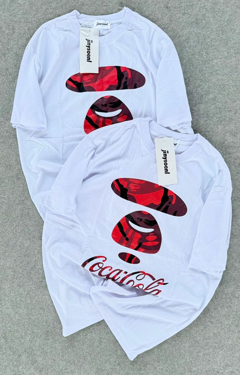 T-shirt en coton blanc avec imprimé Coca Cola vibrant pour un look décontracté et tendance. Idéal pour un style quotidien.