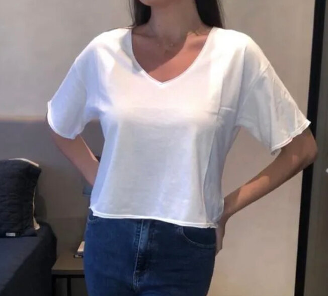 Découvrez notre t-shirt blanc à col en V, parfait pour un style décontracté et élégant. Idéal pour toutes les occasions, sa coupe ample assure un confort optimal. Portez-le avec un jean pour un look simple mais stylé. Fait en tissu doux, il est respirant et agréable à porter, même en été. Un incontournable pour votre garde-robe!