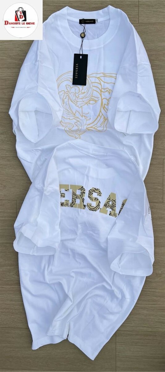 Découvrez ce t-shirt blanc élégant avec un logo doré accrocheur. Conçu pour le confort et le style, il se marie parfaitement avec n'importe quelle tenue décontractée. Idéal pour un look moderne et tendance.