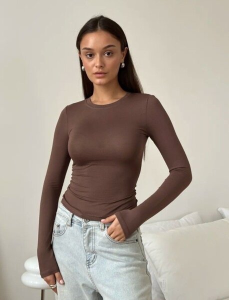 T-shirt ajusté en coton pour femme, manches longues et col rond. Confortable et élégant, idéal pour un look casual. S'adapte parfaitement à votre style.