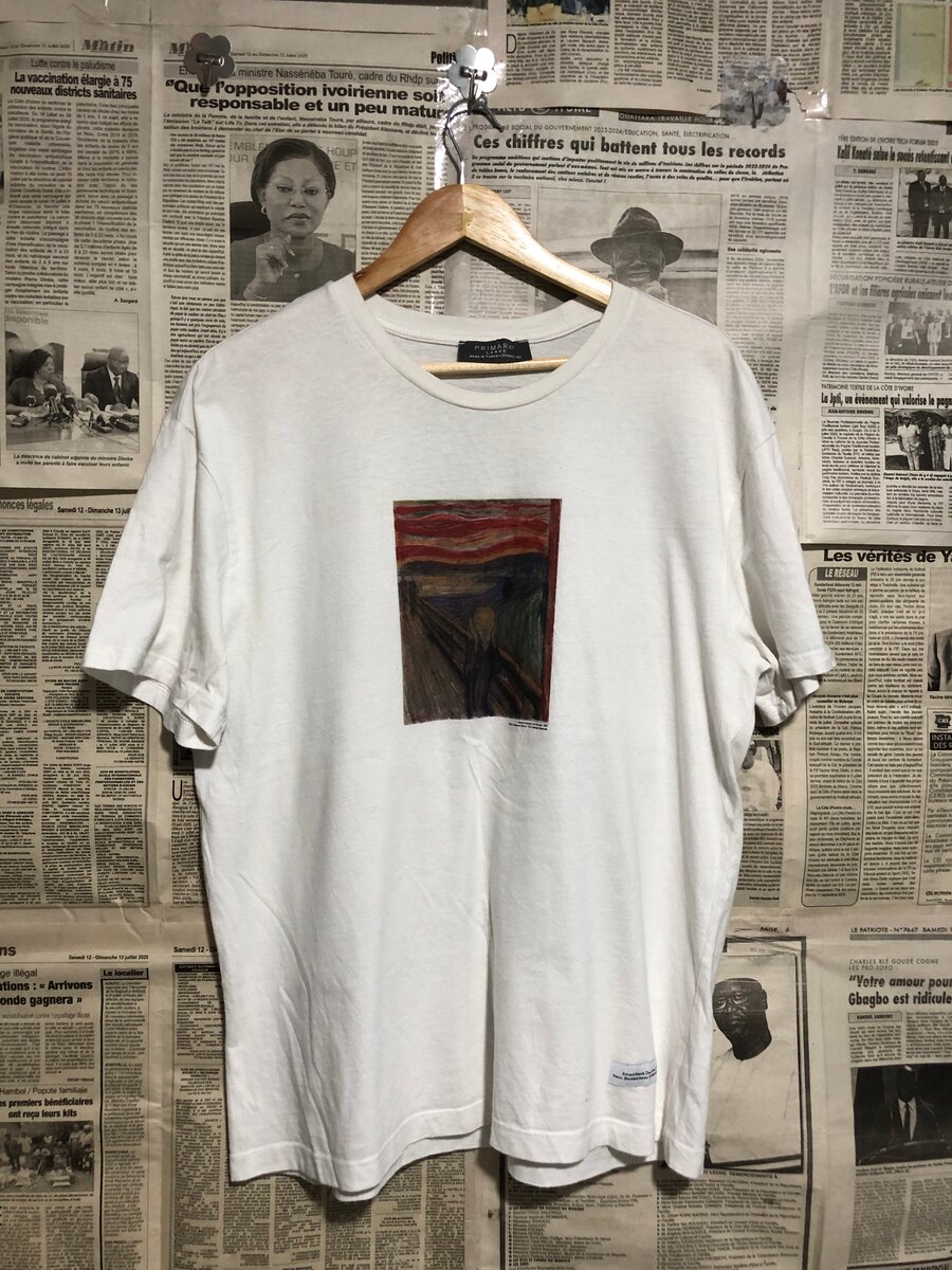 T-shirt blanc en coton avec un motif artistique captivant. Idéal pour les amateurs d'art et ceux qui aiment les looks uniques. Parfait pour un style décontracté avec une touche d'élégance artistique.