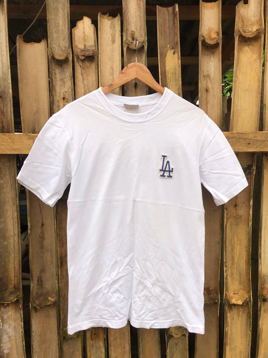 T-shirt blanc en coton, idéal pour un look décontracté. Motif LA distinctif à l'avant et détails colorés au dos. Parfait pour les fans de sport ou pour un style urbain tendance. Portez-le lors de sorties décontractées ou événements sportifs. Taille confortable et design classique.
