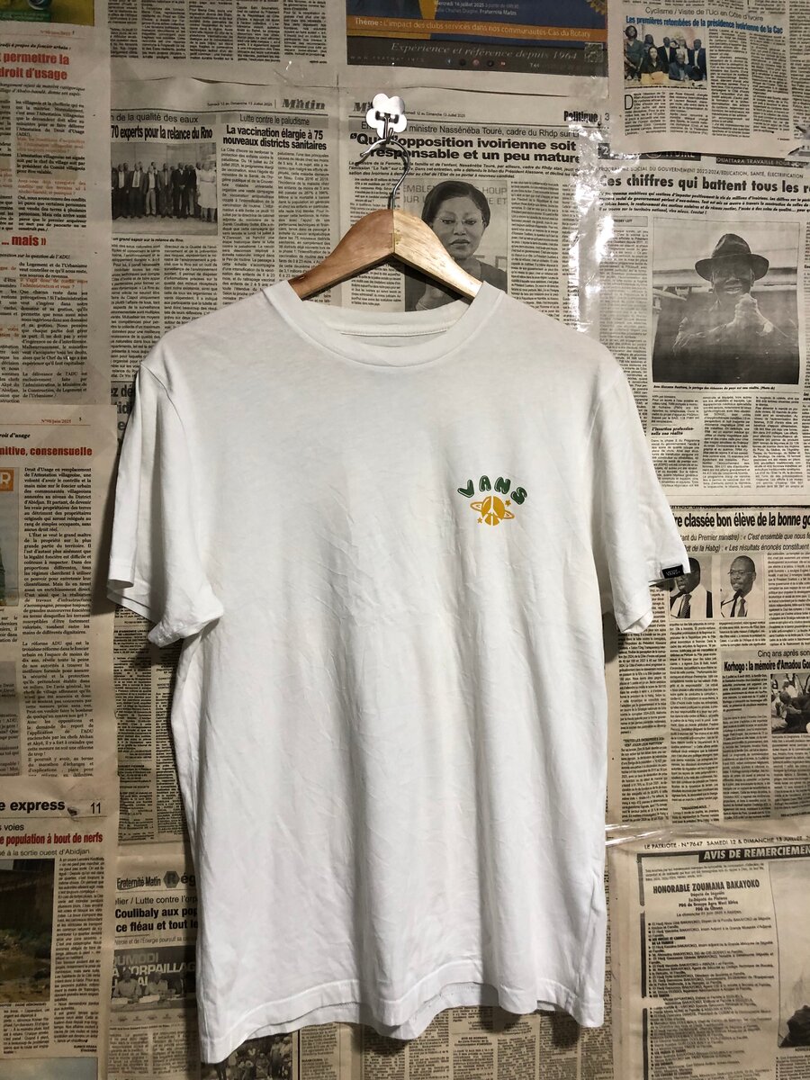 Ce t-shirt blanc VANS célèbre l'unité avec un design unique au dos. Parfait pour un look décontracté, il est idéal pour toute occasion. Fabriqué en coton de qualité, il garantit confort et style.