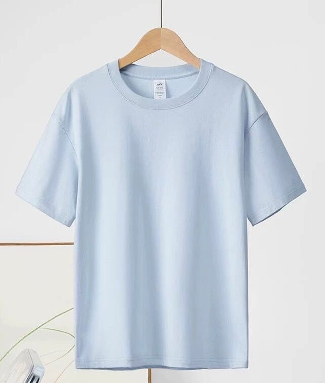 T-shirt bleu clair en coton pour homme, confortable et élégant. Parfait pour un usage quotidien, il est idéal pour les activités décontractées ou comme base pour des looks plus stylisés.