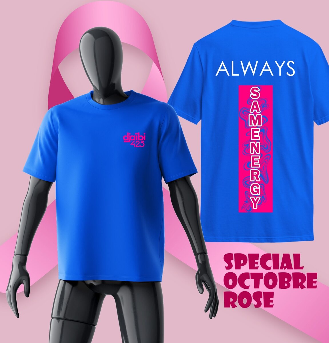 Ce T-shirt bleu exclusif célèbre le mois d'Octobre Rose avec style et engagement. Confortable et en édition spéciale, il affiche un message inspirant de solidarité. Idéal pour montrer votre soutien tout en restant à la mode!