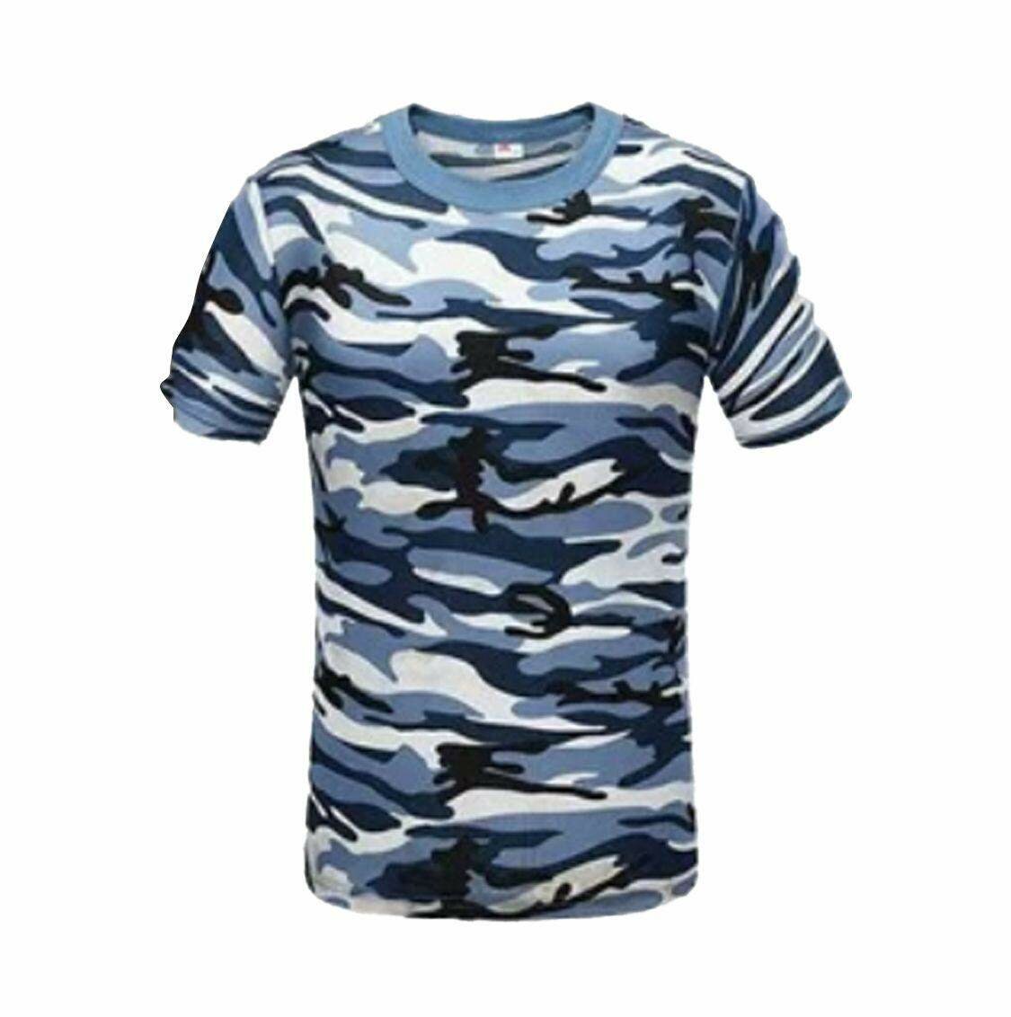 T-shirt homme tendance avec motif camouflage bleu. Confortable et respirant, idéal pour loisirs et sport. Parfait pour un style décontracté et moderne.