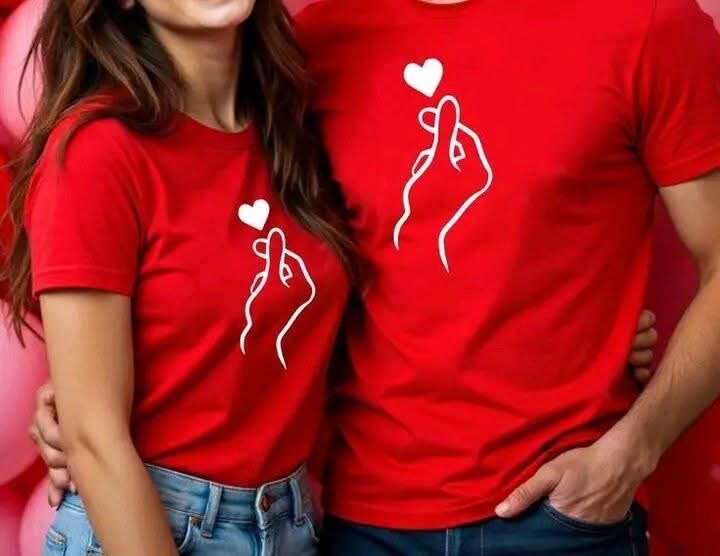 T-shirt pour couple avec motifs originaux pour la Saint-Valentin. Conçus pour être portés ensemble, ces t-shirts sont parfaits pour célébrer l'amour.