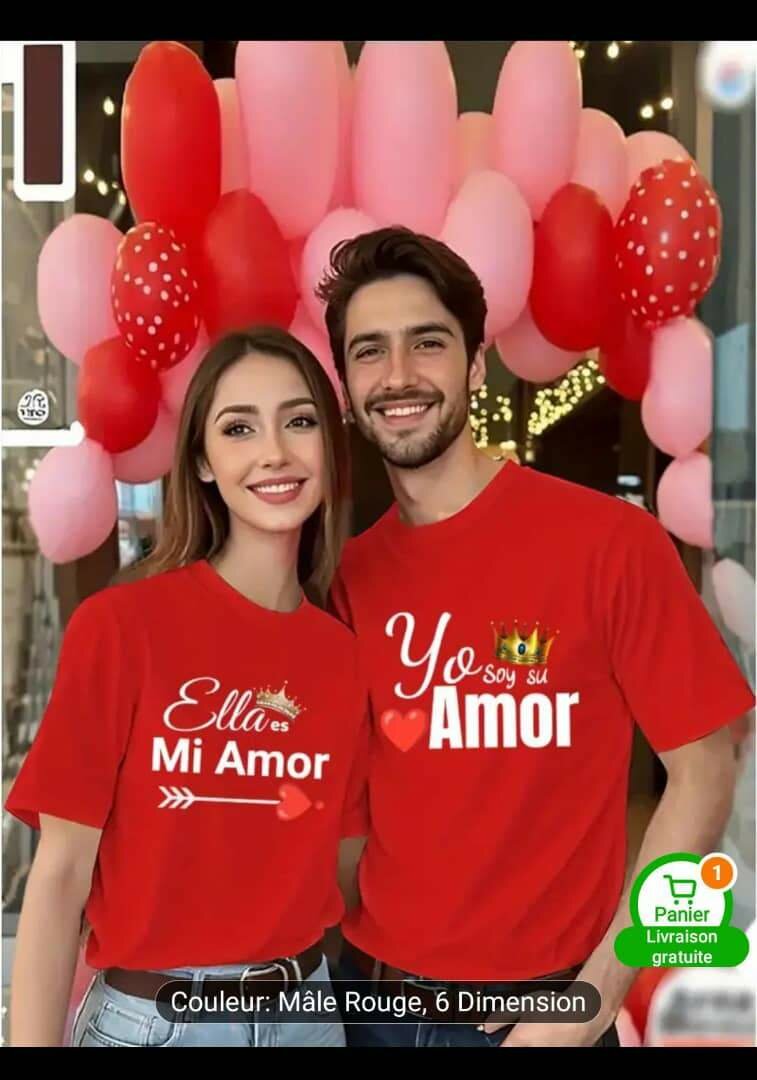 T-shirt pour les couples, idéal pour la Saint-Valentin. Conçu pour homme et femme, confortable et élégant.