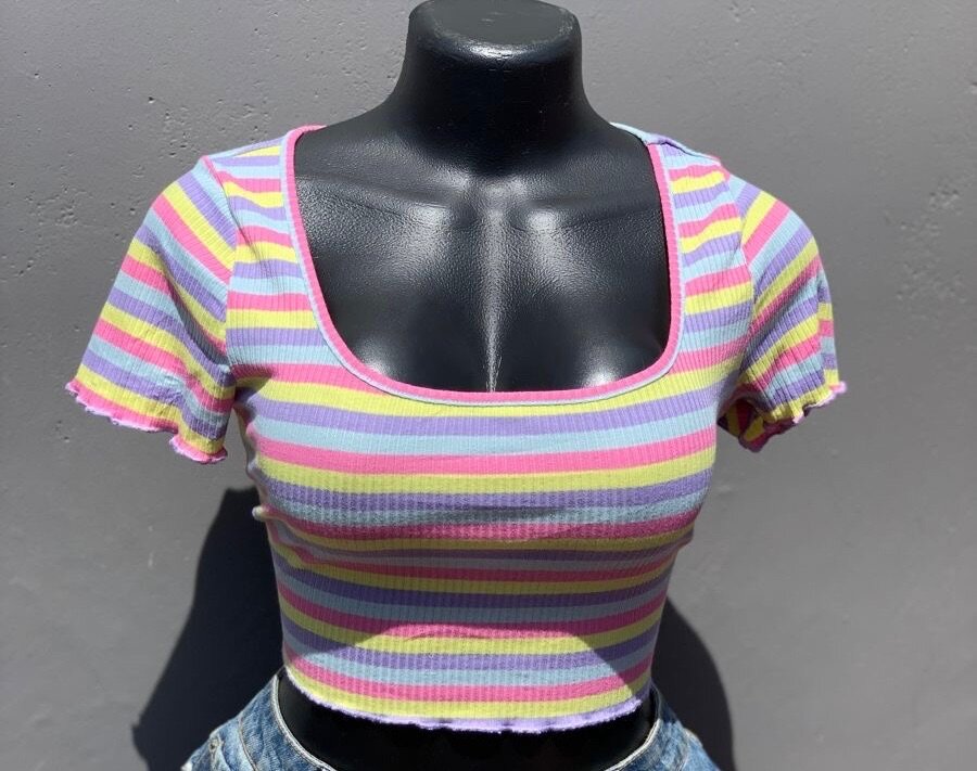 Égayez votre garde-robe avec ce t-shirt court coloré et tendance. Idéal pour un look décontracté et estival. Conçu pour le confort et le style.