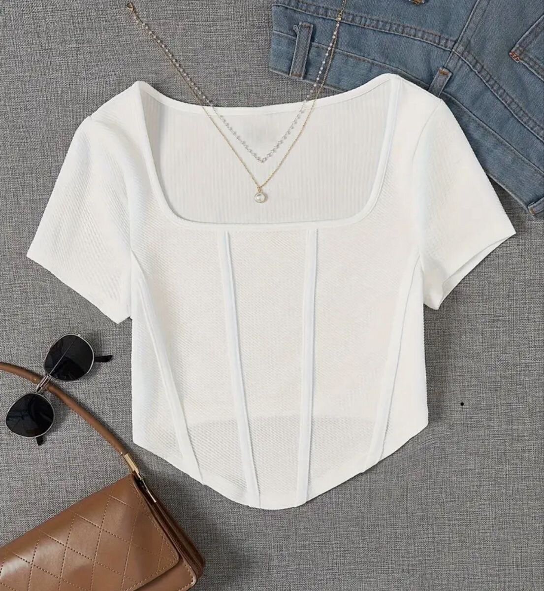 Un t-shirt blanc à manches courtes, conçu pour les femmes. Confectionné en maille, il présente un design élégant et confortable. Idéal pour une tenue décontractée ou pour des occasions informelles, il se marie parfaitement avec des jeans ou des jupes pour un look moderne et chic.