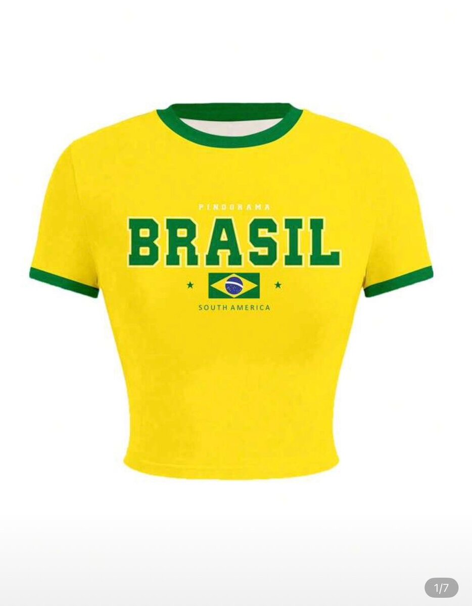 T-shirt cropped style Brésil en jaune vibrant. Confectionné en coton doux, idéal pour les fans de football et supporters. Affichez votre amour pour le Brésil avec style lors des événements sportifs ou sorties décontractées. Disponible en plusieurs tailles.