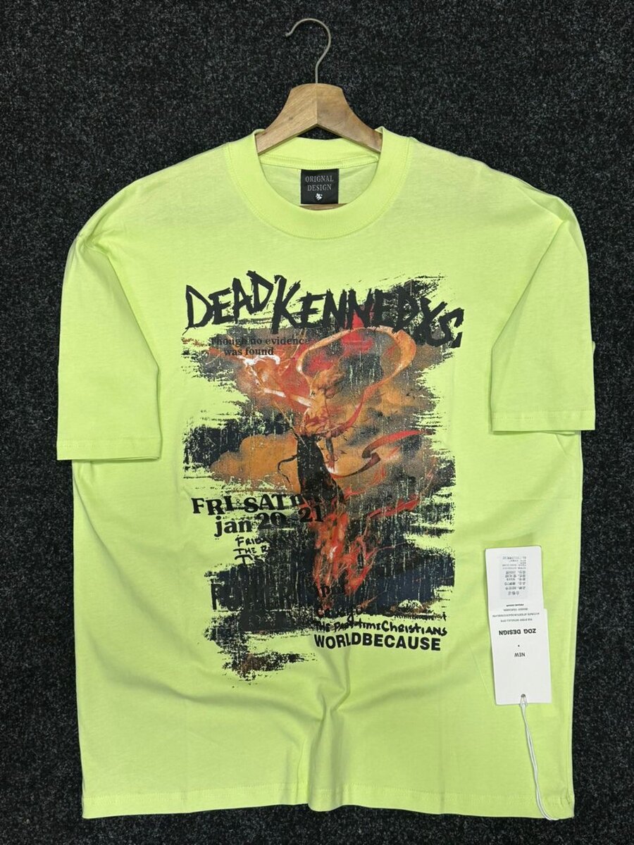 T-shirt vert fluo avec impression Dead Kennedys. Idéal pour les fans de punk rock, concerts et musique alternative. Confortable et tendance.