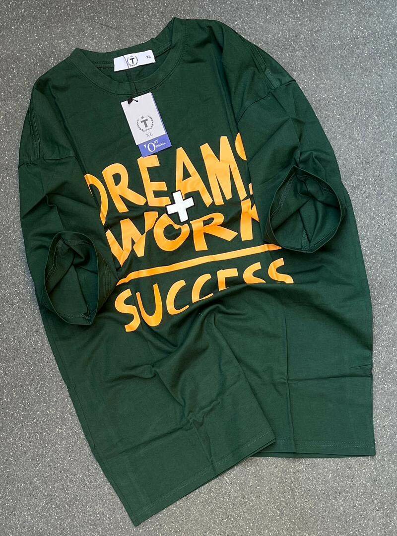 T-shirt tendance unisexe avec message inspirant "Dream + Work = Success". Fabriqué en coton doux pour un confort optimal. Idéal pour un look décontracté et motivant.