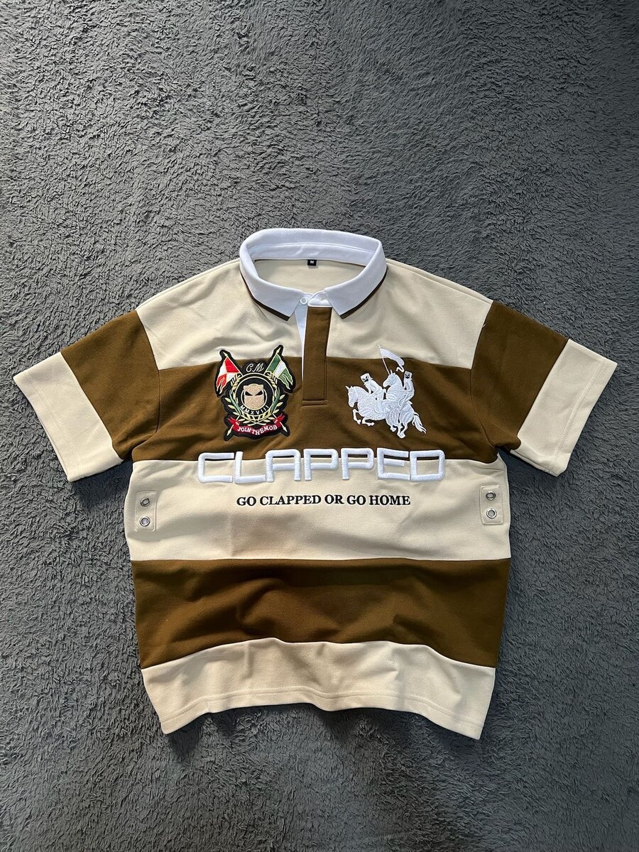 T-shirt ELAPPED marron et blanc avec impression graphique. Idéal pour les amateurs de mode streetwear et casual.