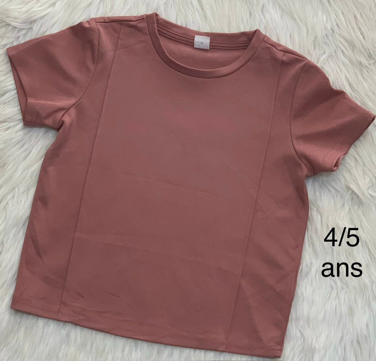 T-shirt rose doux pour enfants de 4 à 5 ans. Fabriqué en matériau confortable, idéal pour le quotidien. Parfait pour les anniversaires et les petites sorties