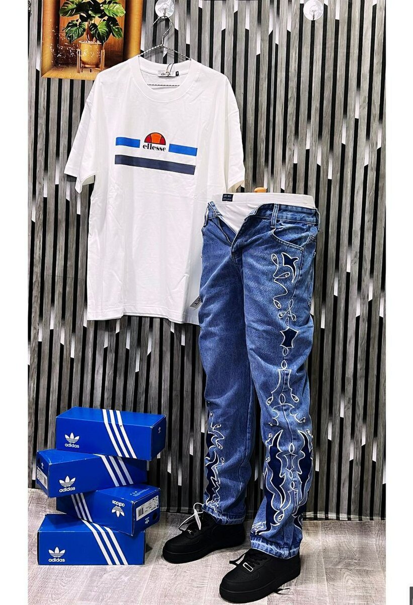Découvrez ce combo stylé : T-shirt graphique léger et jean à motifs. Parfait pour un look décontracté au quotidien. Associez-les avec des baskets pour une touche finale tendance. Un choix idéal pour ceux qui recherchent confort et style.