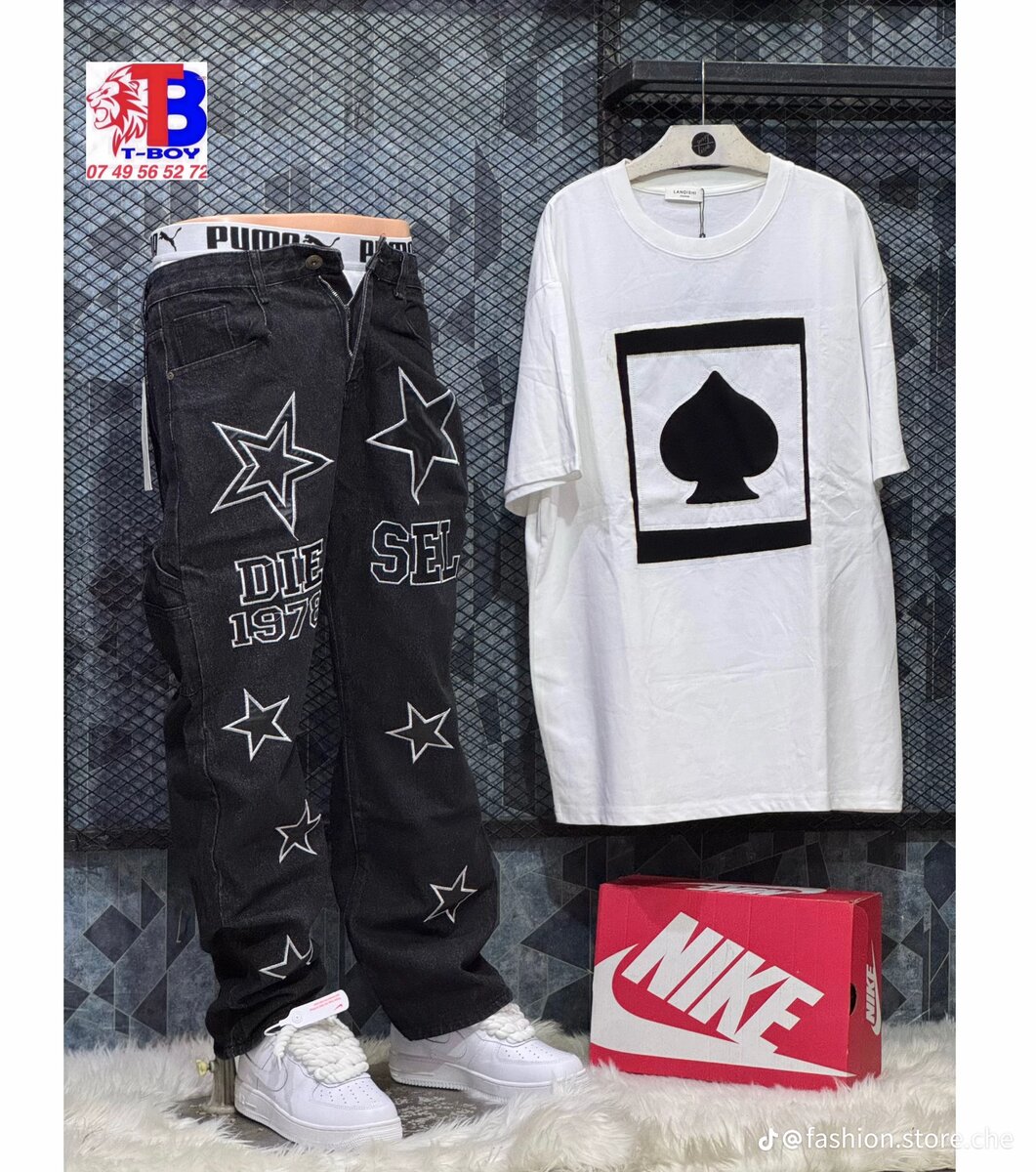 Mettez à jour votre style avec ce t-shirt unique et ce pantalon décoré d'étoiles. Parfait pour une tenue décontractée et tendance, ce produit est idéal pour les amateurs de mode urbaine. La qualité du tissu assure confort et durabilité. Optez pour un look audacieux et restez à la pointe de la mode !