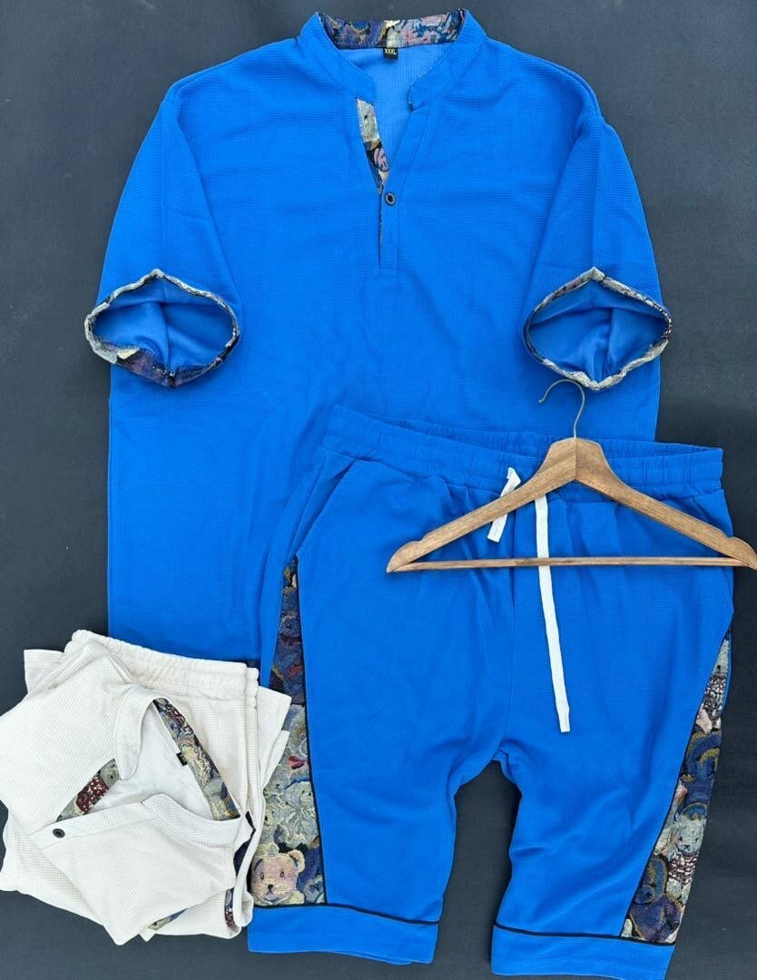 Ensemble confortable de t-shirt et short en coton, idéal pour le quotidien. Disponible en plusieurs couleurs modernes avec détails contrastés. Parfait pour un look décontracté et élégant.